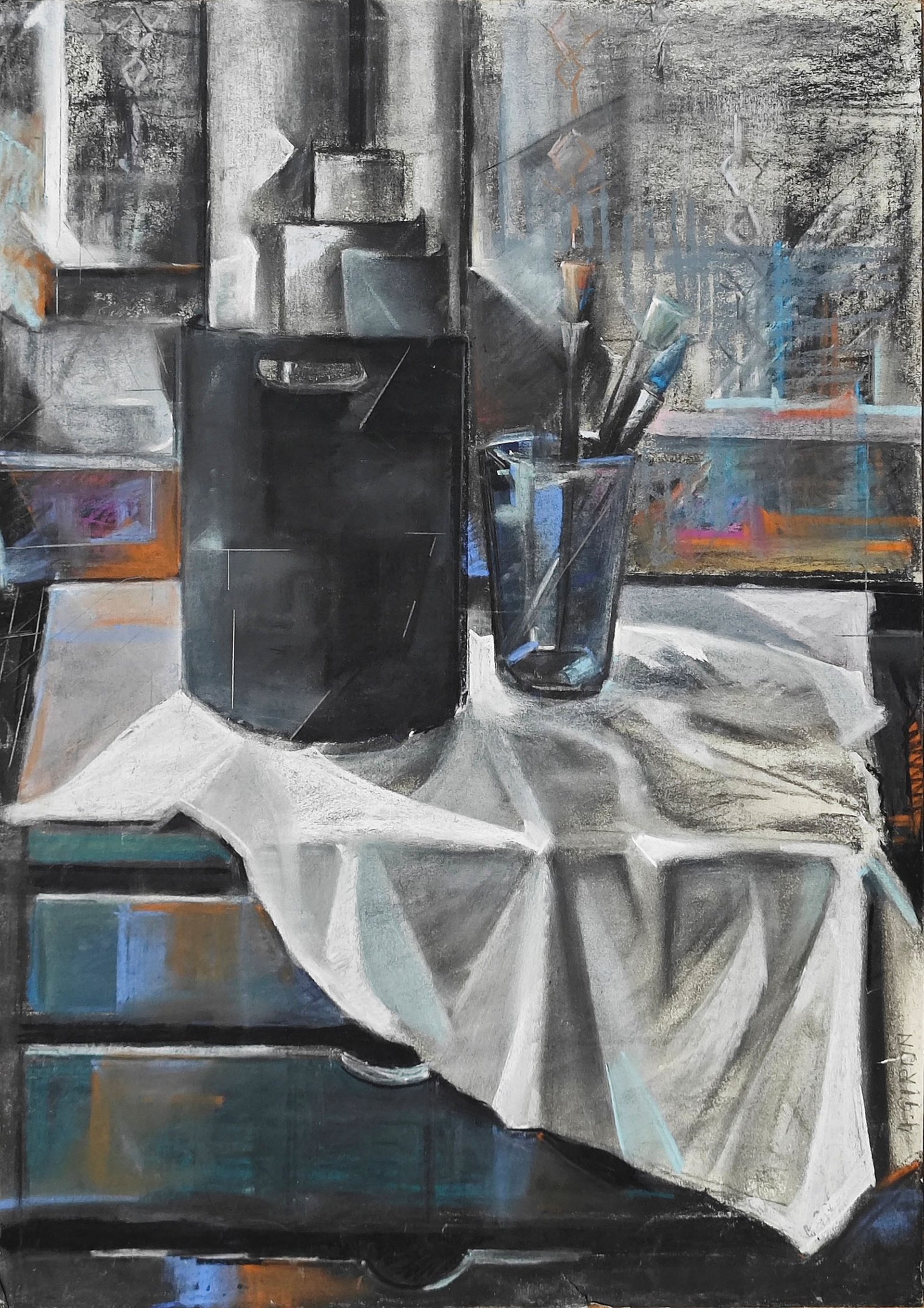 Vasijas y pinceles. Pastel sobre papel. 50x70 cm. 2014.